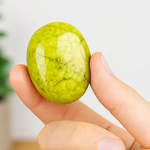 A bulk lot of polished green opal palm stones, handpicked by us for color balance, smooth finish, and overall quality. These stones feature soft to vivid green tones with natural translucency, clouding, and subtle patterning typical of genuine green opal. Each piece is comfortably shaped to fit the palm and finished with a smooth polish.