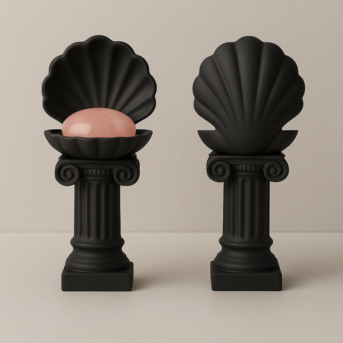 The Black Gothic Clam Shell Holder blends Roman column design with moody elegance. Its deep, matte surface recalls aged obsidian or basalt—sculptural, dramatic, and modern. Each piece is lightweight, refined, and individually 3D printed in-studio.