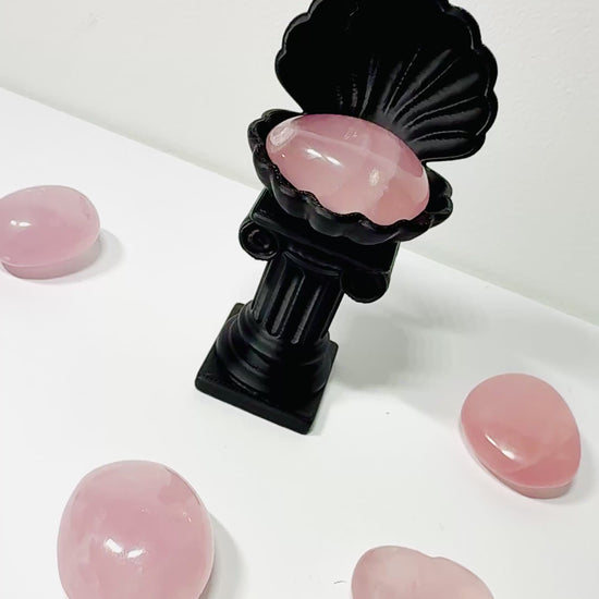 Inspired by Roman architecture and dark romanticism, this stand evokes antique cathedrals and nocturnal elegance. The shell form cradles your crystal like a relic—bridging classical refinement with gothic modernism.