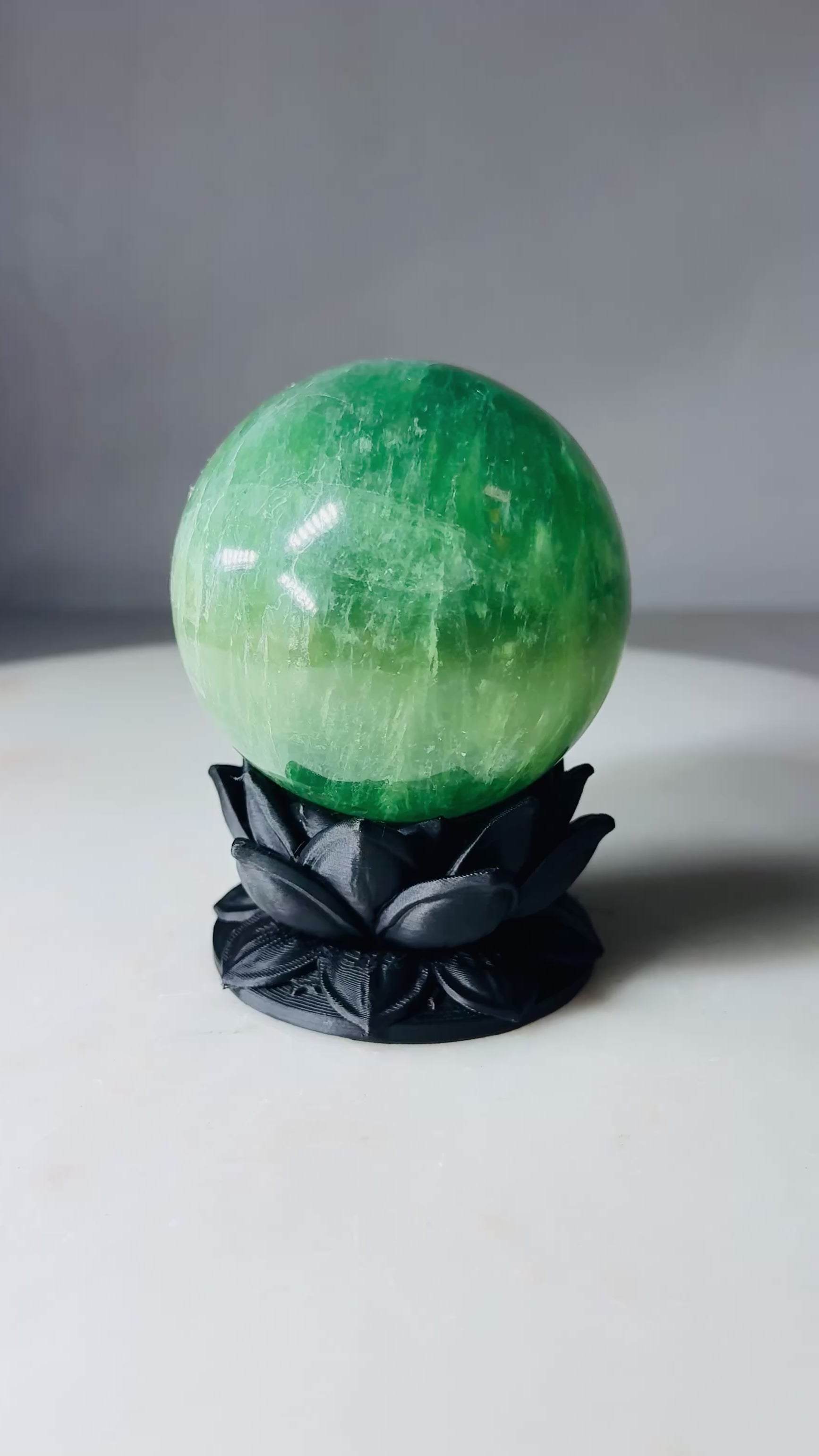 Each crystal sphere is carefully selected by us for quality, color, and overall aesthetic. Due to natural variation, the stone you receive will be similar in appearance and grade, but not the exact piece shown.