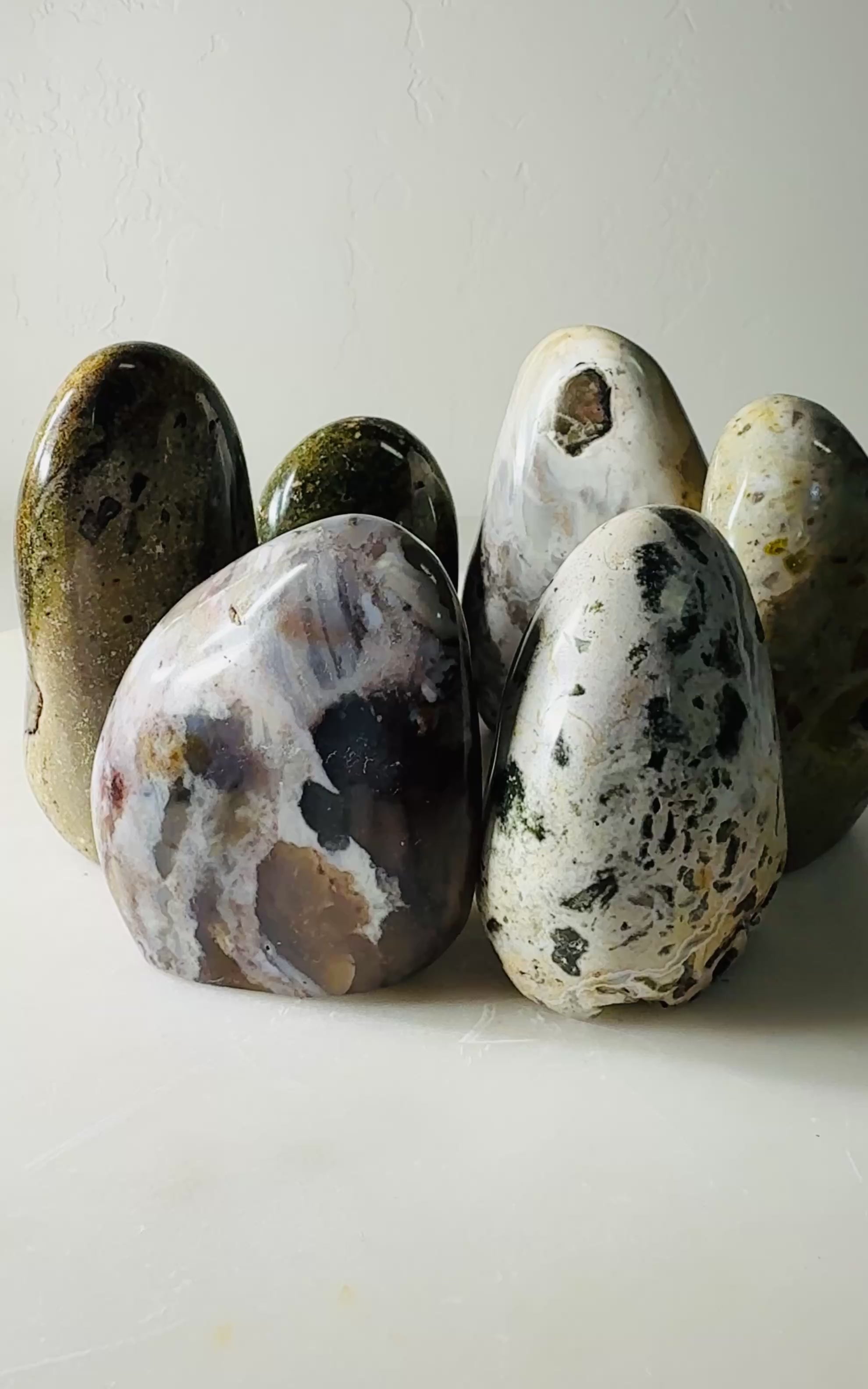 A polished mini jasper freeform specimen, handpicked for its unique color variations, natural patterns, and smooth finish. Each piece showcases the organic beauty of jasper, with earthy tones, banding, and inclusions that make every specimen one of a kind.