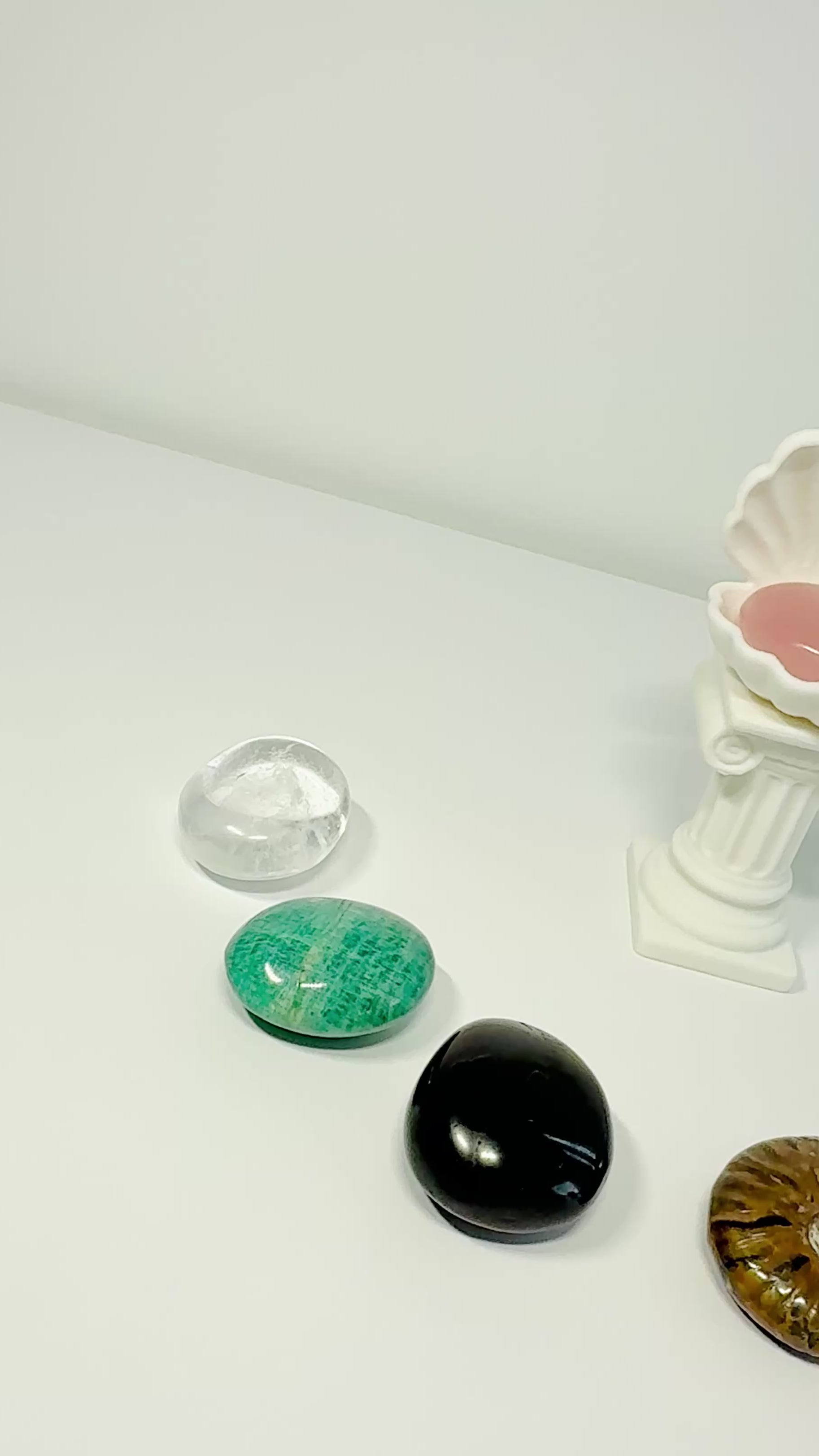 A fusion of Roman architecture and oceanic elegance, this holder serves as both vessel and sculpture. Its clam shell top cradles your crystal pebble like an artifact from a forgotten era — blending antique allure with modern simplicity.