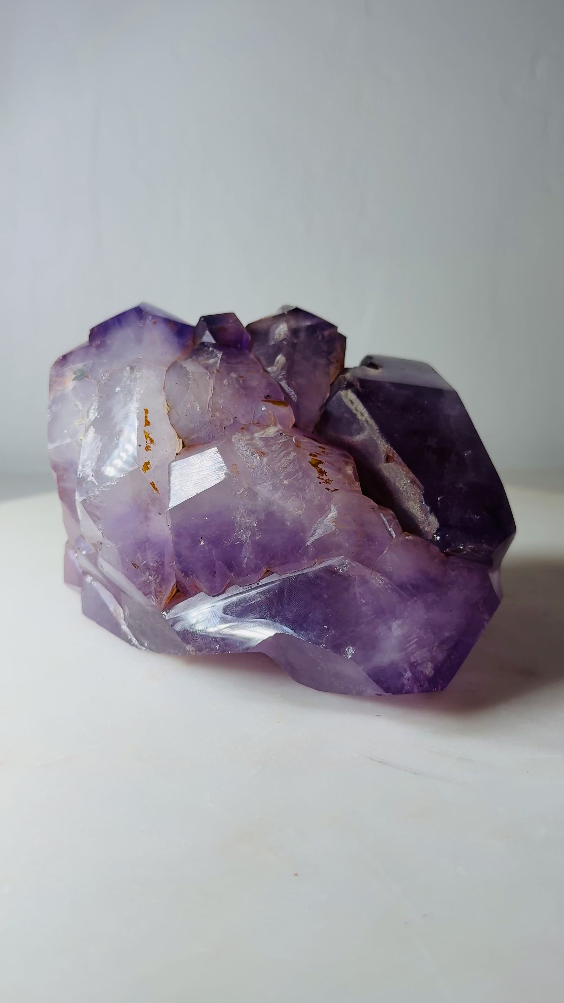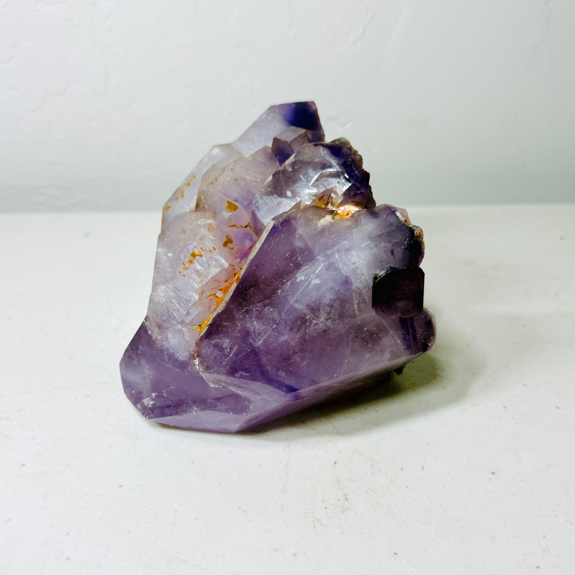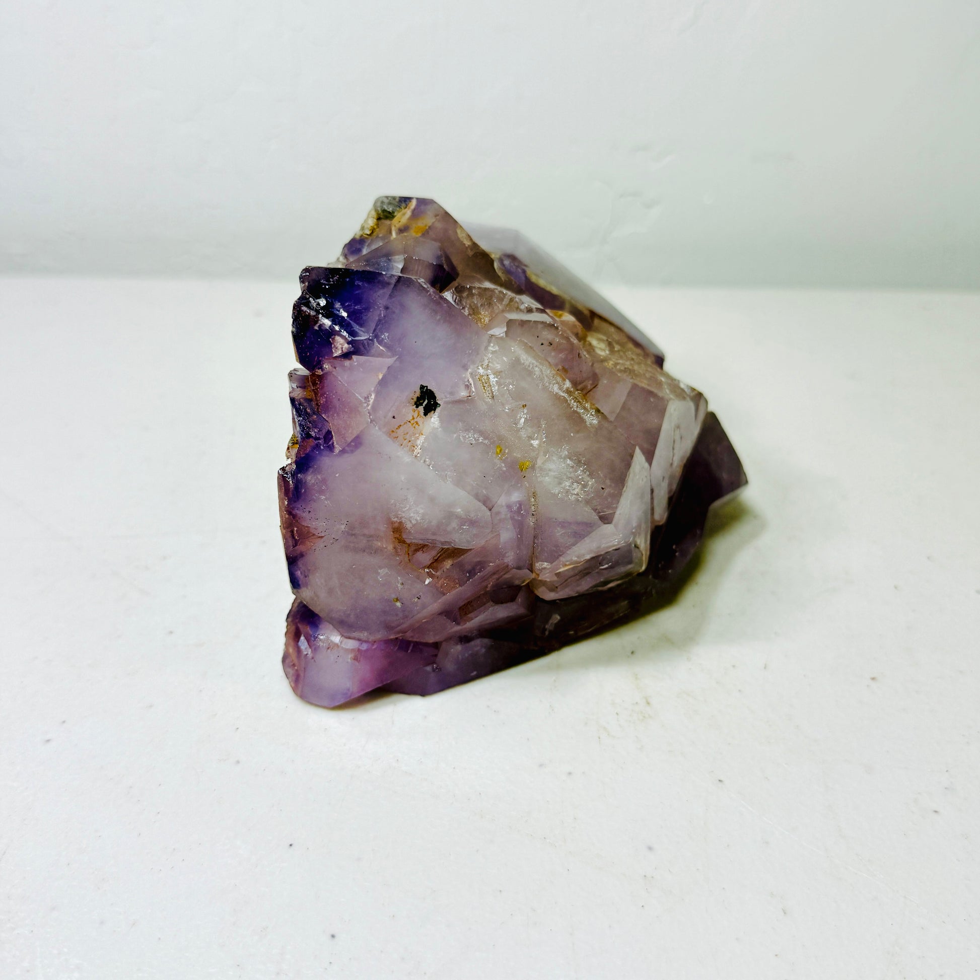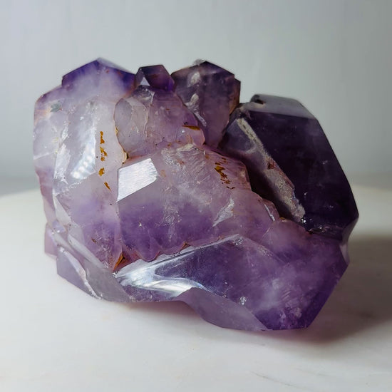 This one-of-a-kind amethyst crystal freeform showcases a naturally expressive form shaped by geological growth rather than symmetry. The piece features semi-rough crystal faces, visible natural inclusions, and authentic matrix breakage marks that highlight its raw origin and mineral character.