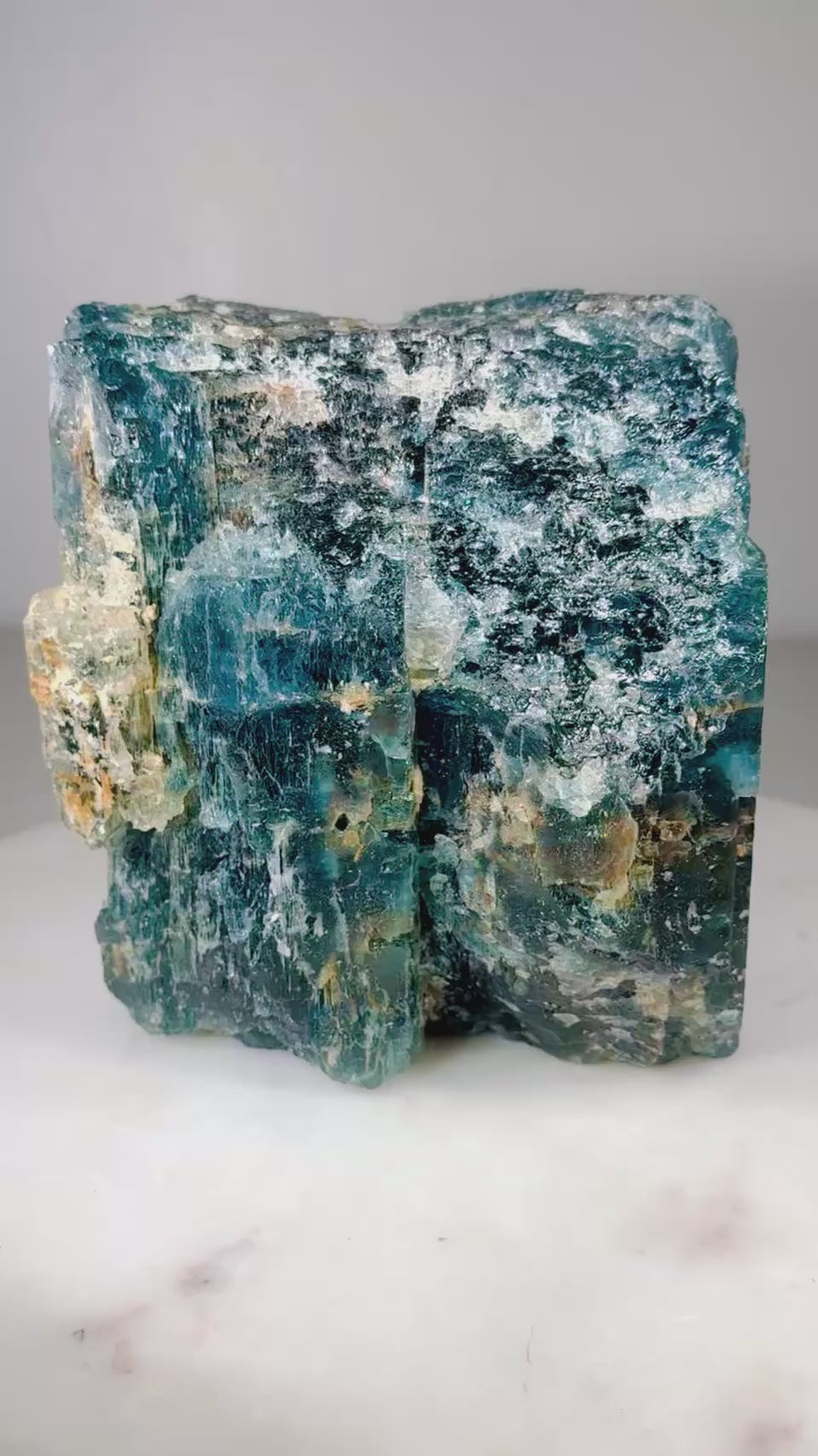 This extra-large Madagascan Aquamarine specimen is a striking display piece, weighing 14.5 lbs and measuring approximately 7” x 8” x 6”. Its naturally exposed crystal structure showcases deep ocean-blue tones, icy translucency, and rugged mineral formations—highlighting the raw beauty Aquamarine is known for.
